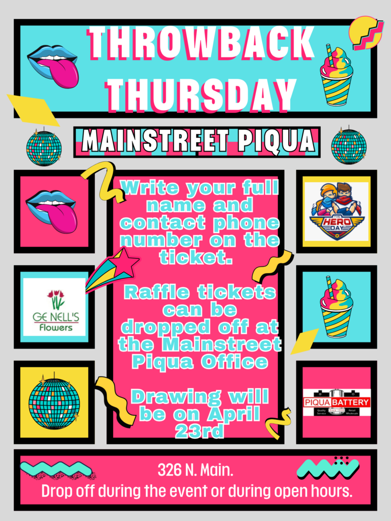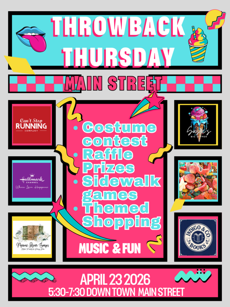 Can’t make it to the Throwback Thursday event? That is okay, you can still support Junior MainStreet and the downtown merchants by shopping downtown and snagging a raffle ticket at participating locations. The raffle tickets get you in the drawing for some AMAZING prizes!